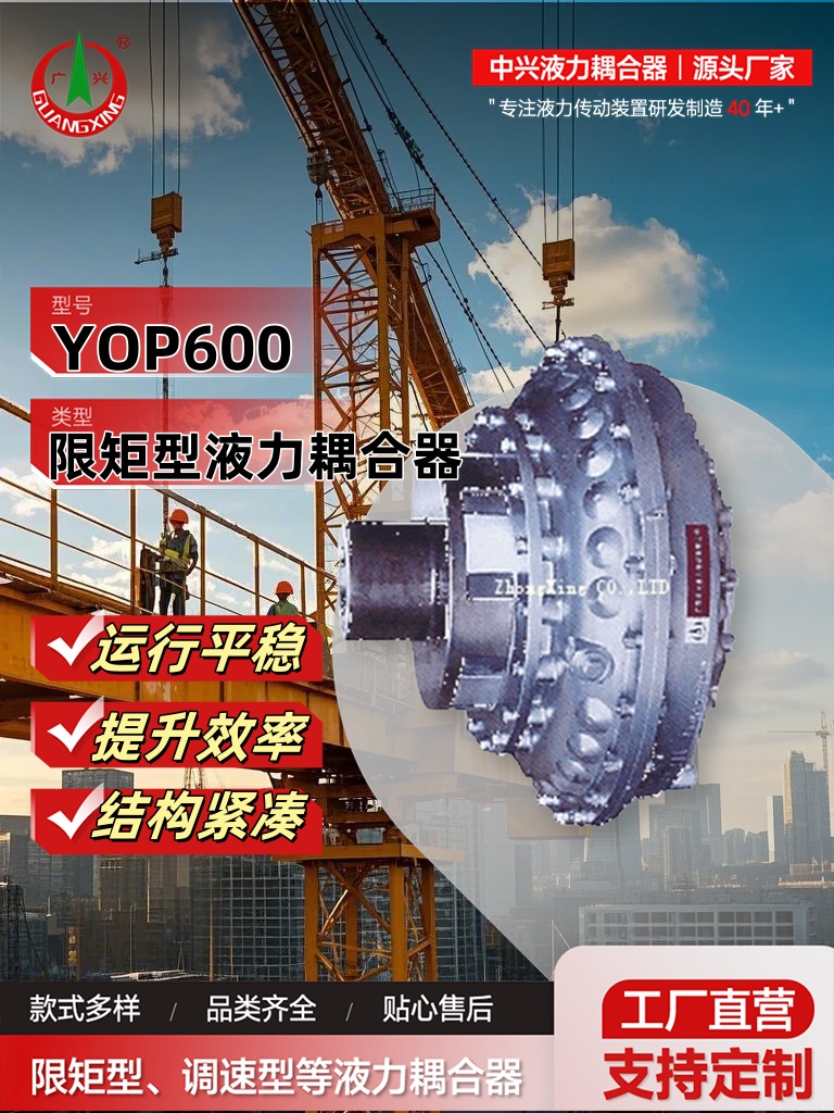 中興液力傳動作為行業(yè)領(lǐng)先的液力耦合器制造商,憑借其強大的研發(fā)與創(chuàng)新能力,推出了先進的YOP600限矩型液力耦合器,旨在為塔式起重機提供卓越的動力傳輸解決方案。